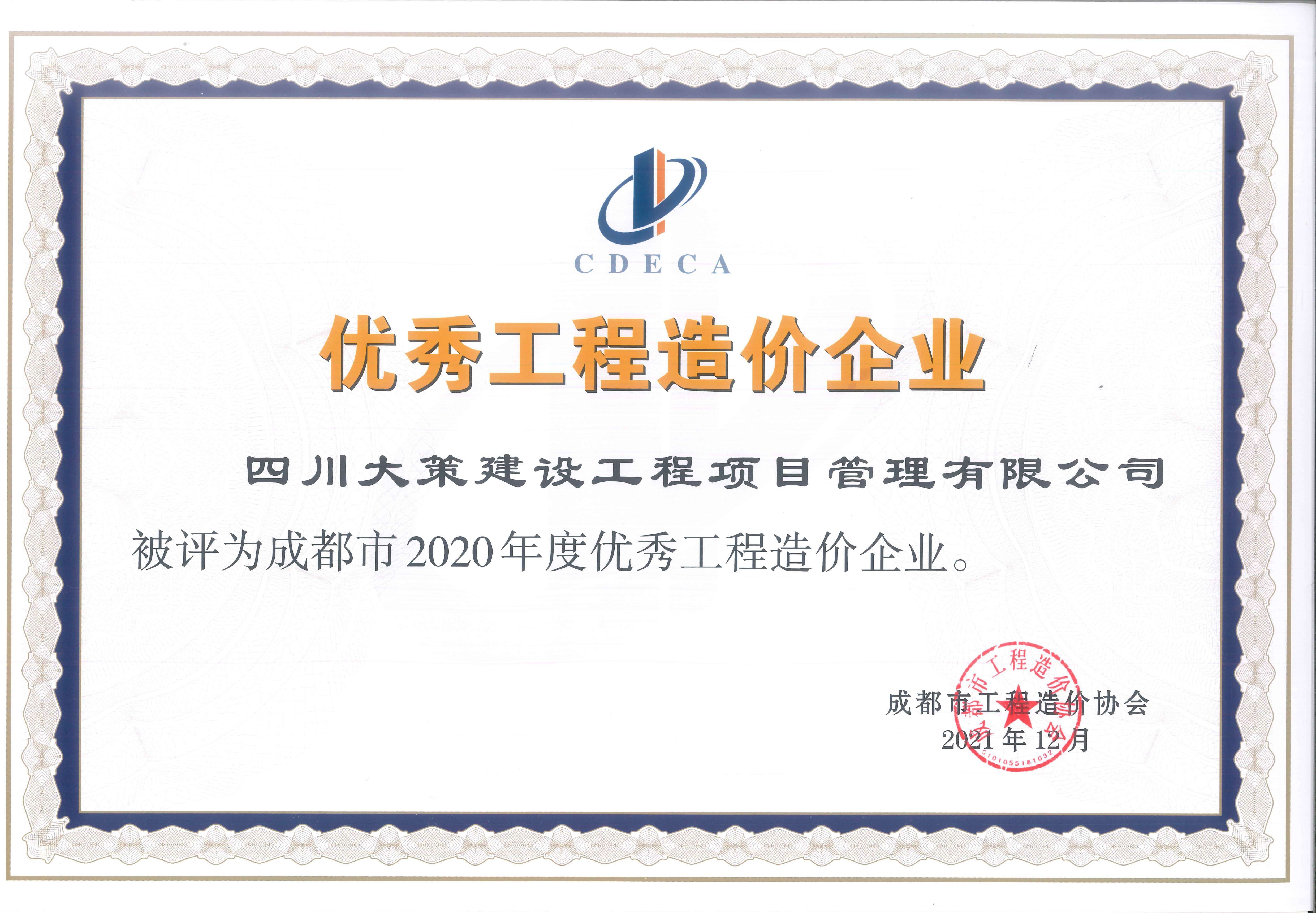 • 2020年度優(yōu)秀工程造價(jià)咨詢(xún)企業(yè)
